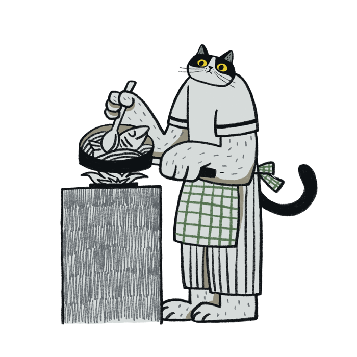 냥이가 맛있는 생선요리를 하고 있어요