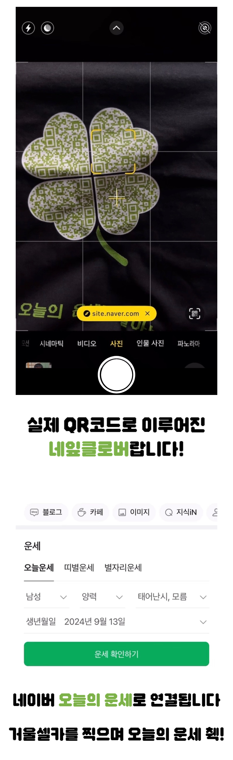 티셔츠의 QR코드를 인식해서 오늘의 운세를 알아보세요 🍀