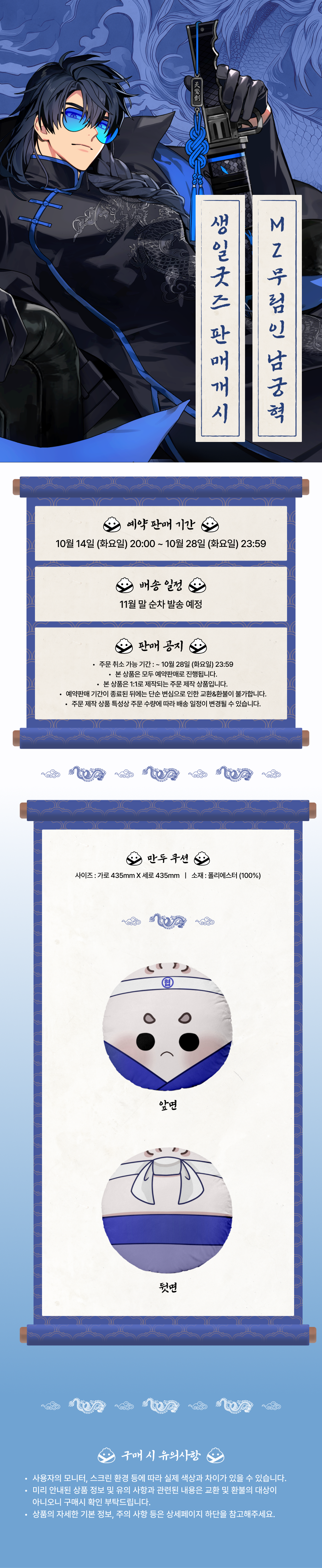 굿즈 진짜 이뻐요 생일 정말로 축하드려요 늘 신경 써서 만들어 주셔서 행복한 만두입니다 대협도 가솔님들도 항상 행복하시고 건강하시길 바랍니다 창천!!