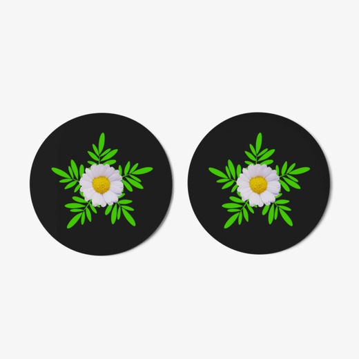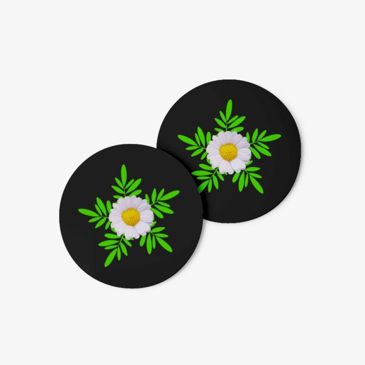 It is made of the specially-coated printed area and cork. It is resistant to color fading because it is water-proof and features great color expressions. It is made as a set of two identical coasters.
