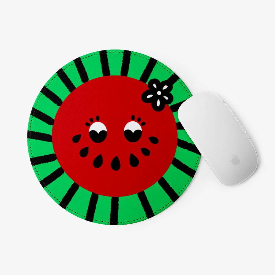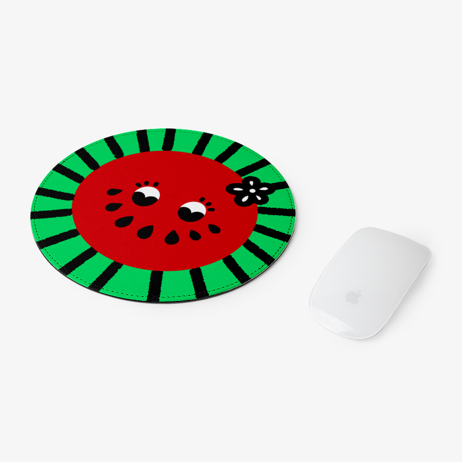 부드러운 합성 피혁으로 제작된 원형 마우스 패드입니다.
