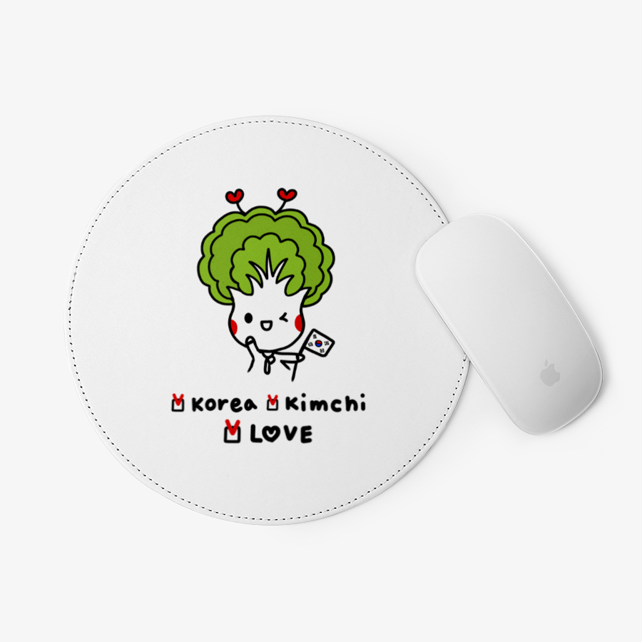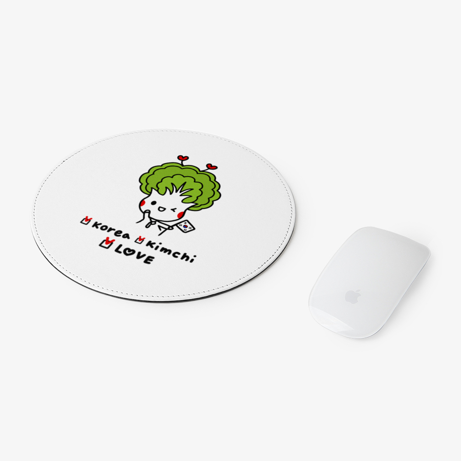부드러운 합성 피혁으로 제작된 원형 마우스 패드입니다.
