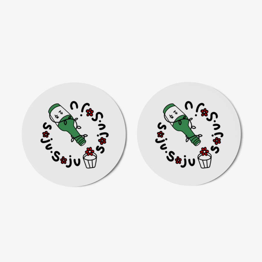 It is made of the specially-coated printed area and cork. It is resistant to color fading because it is water-proof and features great color expressions. It is made as a set of two identical coasters.