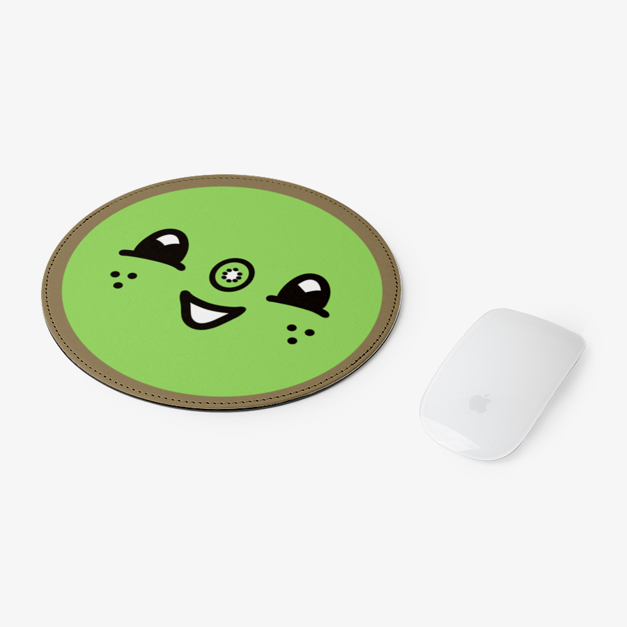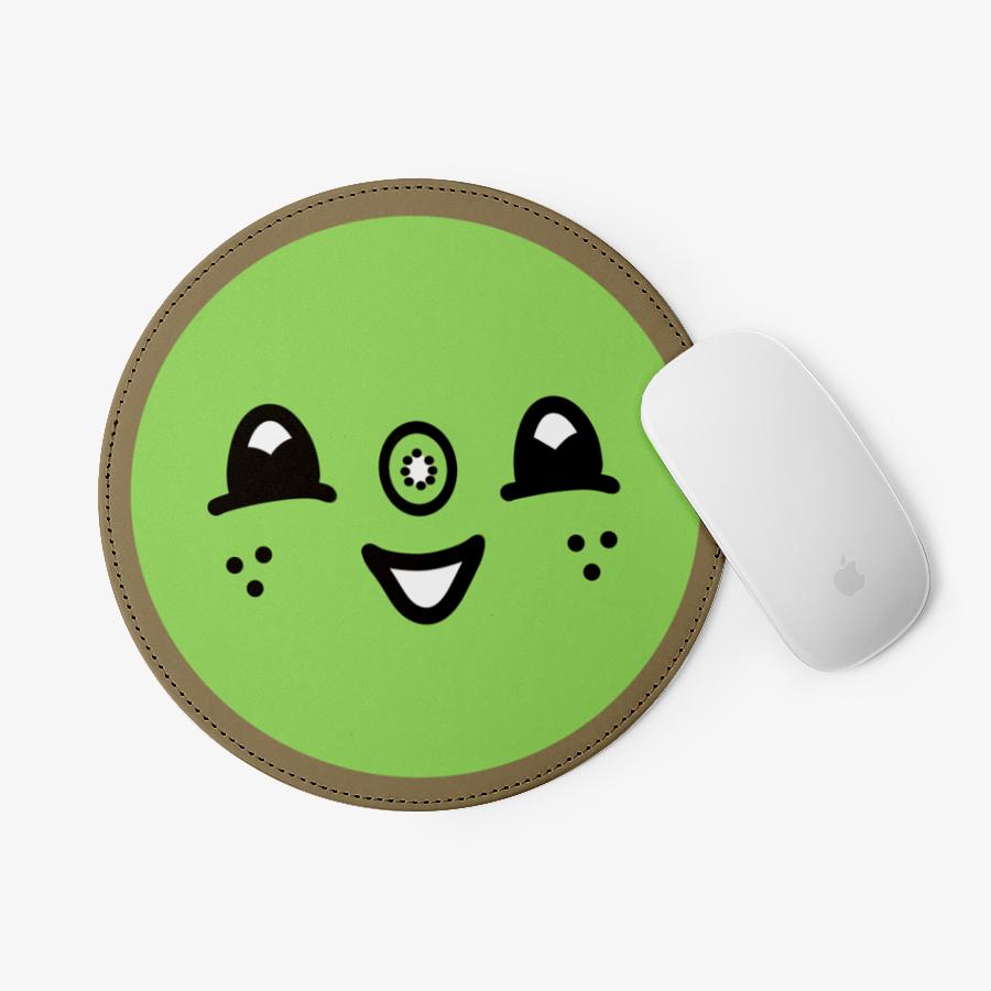 부드러운 합성 피혁으로 제작된 원형 마우스 패드입니다.
