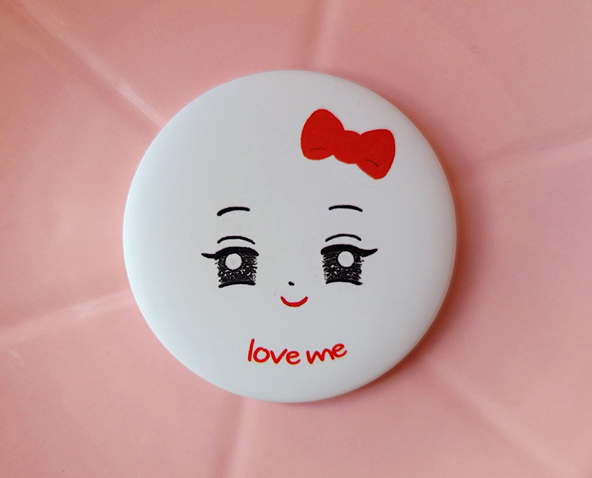 지름 58mm 크기의 핀버튼으로, 뒷면이 거울로 제작됩니다.